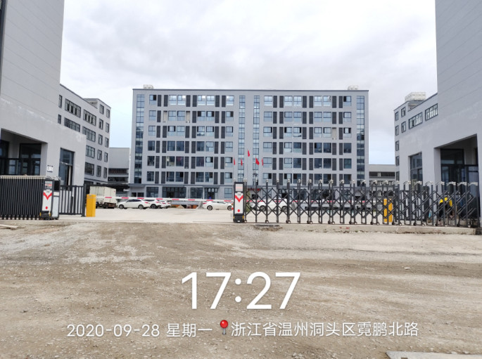 图4 温州市日冠科技有限公司厂区(正对面为员工宿舍,正门右侧为1#生产车间,正门左侧为2#生产车间)