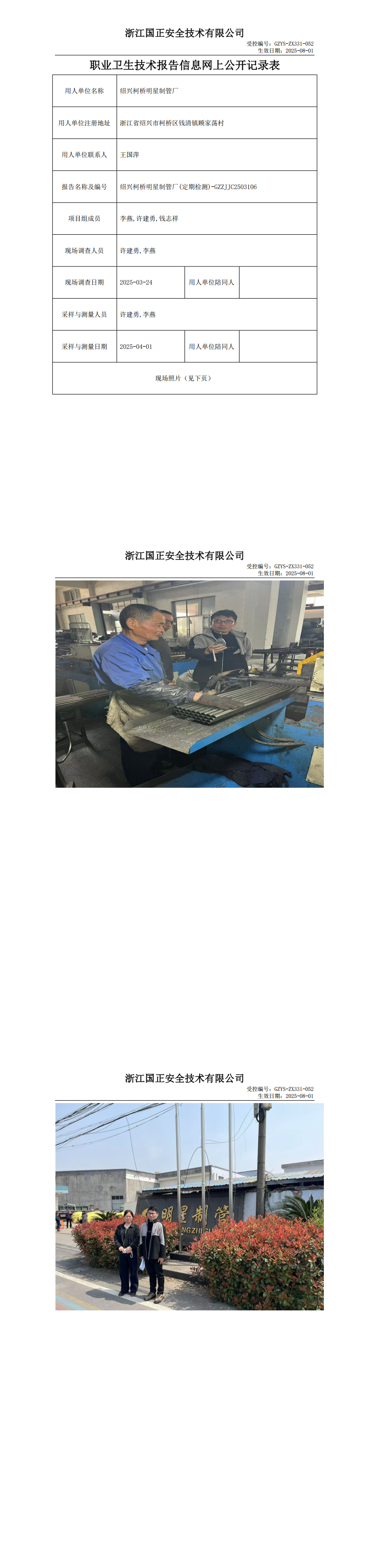 GZZJJC2503106绍兴柯桥明星制管厂工作场所职业病危害因素检测报告网上公开信息表_00