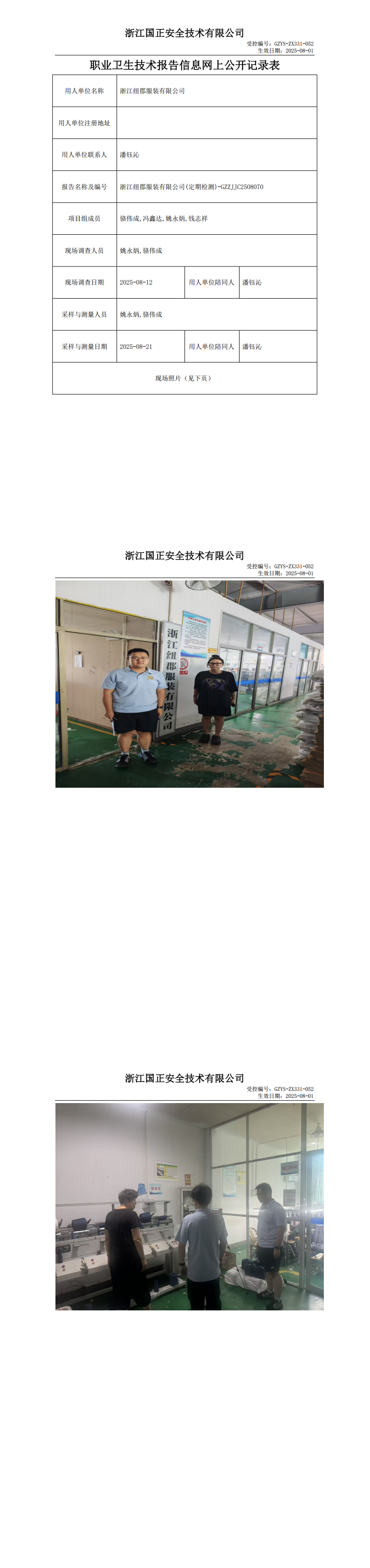 GZZJJC2508070_浙江纽郡服装有限公司工作场所职业病危害因素检测报告网上公开信息表