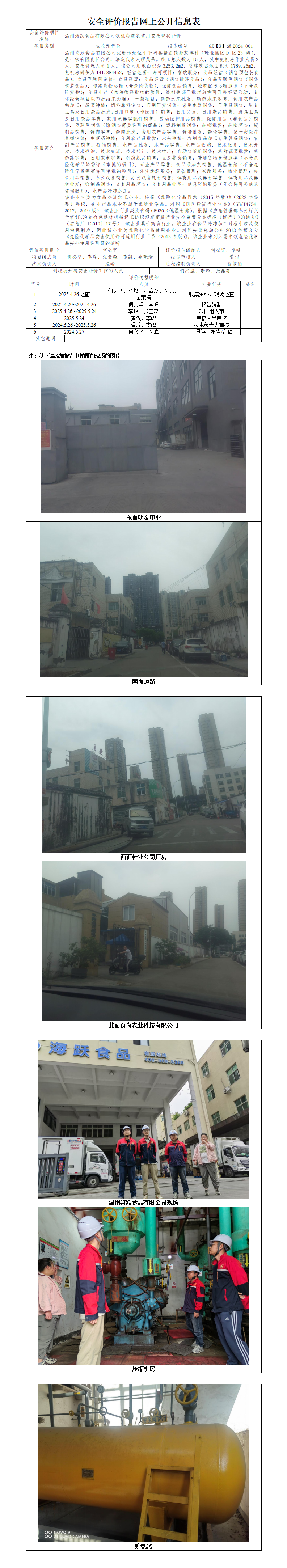 GZ【X】温2024-001温州海跃食品有限公司氨机房液氨使用安全现状评价网上公开信息表