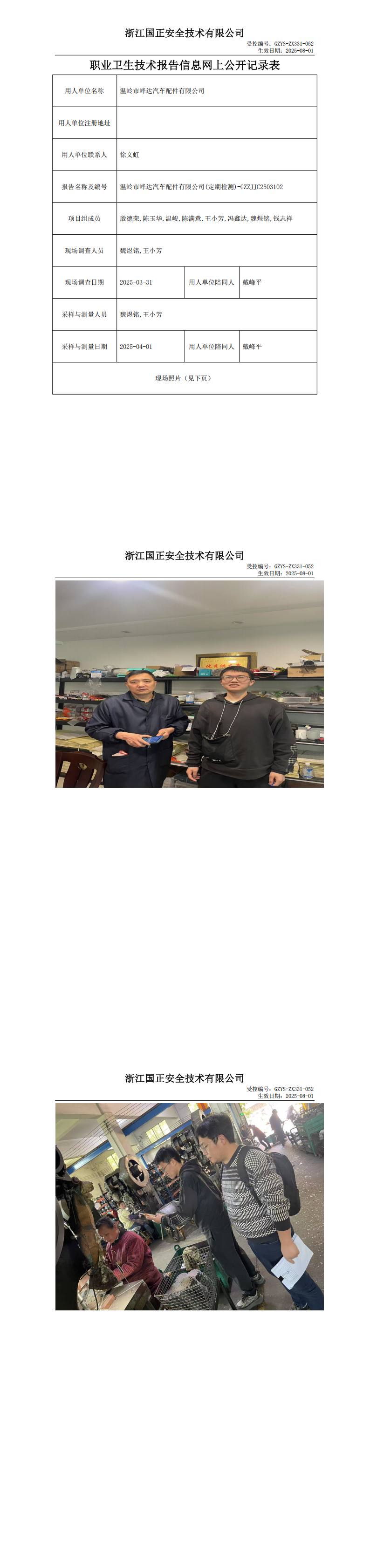 GZZJJC2503102_温岭市峰达汽车配件有限公司工作场所职业病危害因素检测报告网上公开信息表