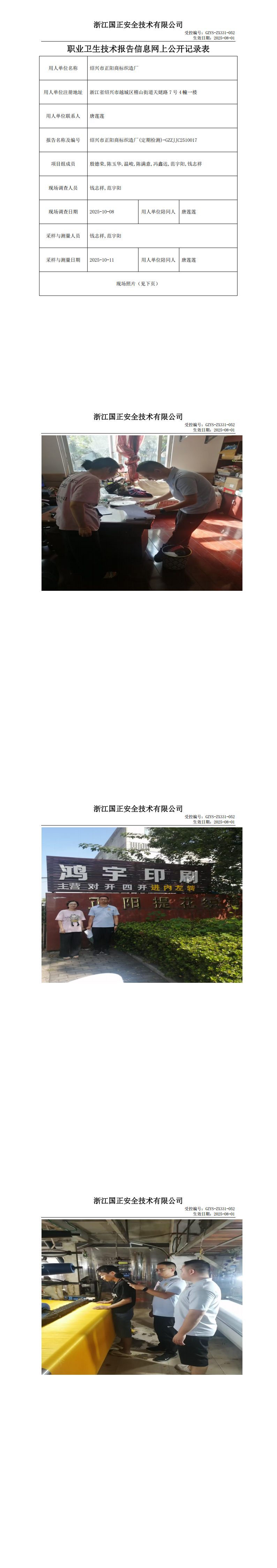 GZZJJC2510017绍兴市正阳商标织造厂工作场所职业病危害因素检测报告网上公开信息表