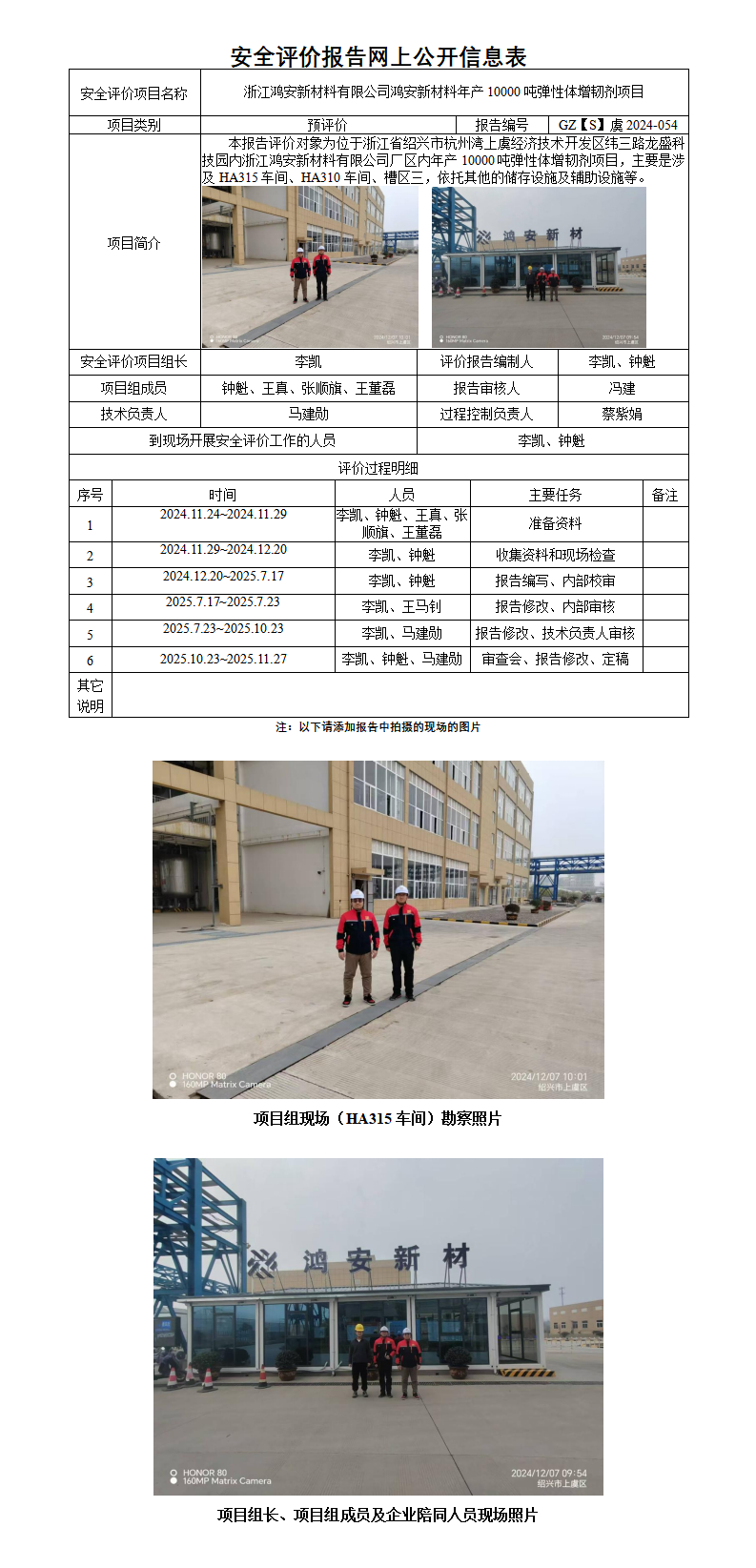 GZ【S】虞2024-054浙江鸿安新材料有限公司年产10000吨弹性体增韧剂项目 安全评价报告 网上公开表