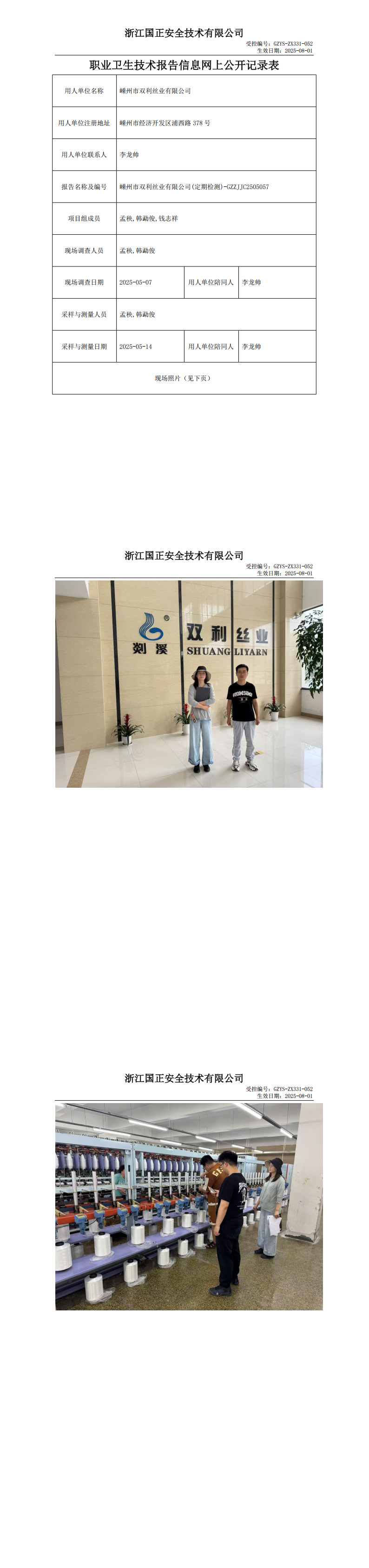 GZZJJC2505057_嵊州市双利丝业有限公司职业卫生检测与评价报告网上公开表_