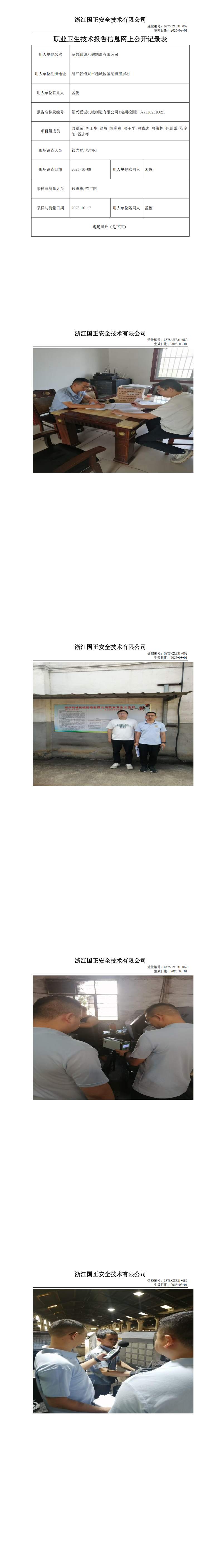 GZZJJC2510021绍兴联诚机械制造有限公司工作场所职业病危害因素检测报告网上公开信息表