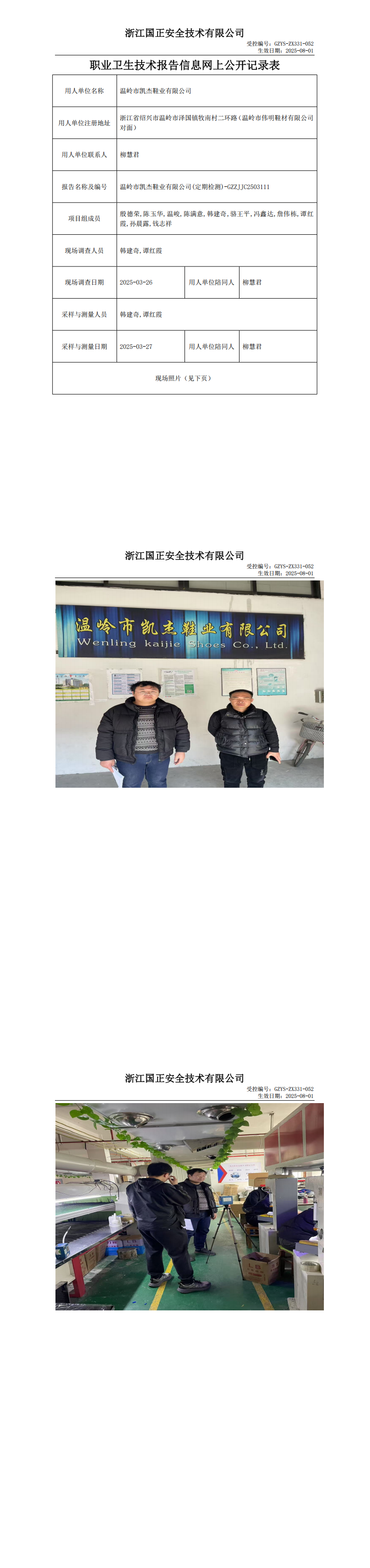 GZZJJC2503111_温岭市凯杰鞋业有限公司工作场所职业病危害因素检测报告网上公开信息表