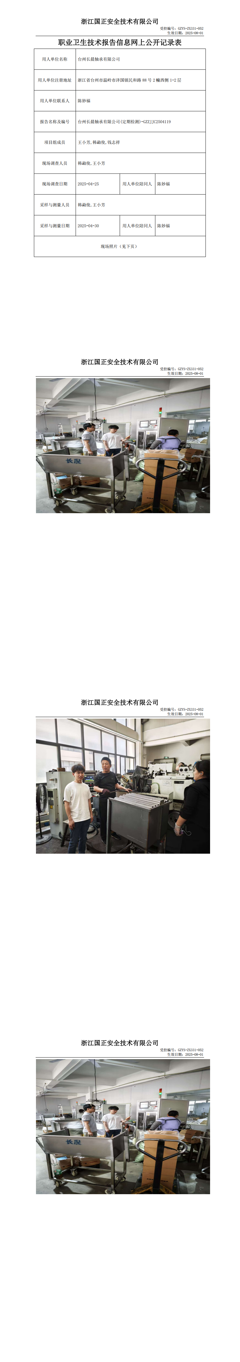 GZZJJC2504119_台州长晨轴承有限公司工作场所职业病危害因素检测报告网上公开信息表