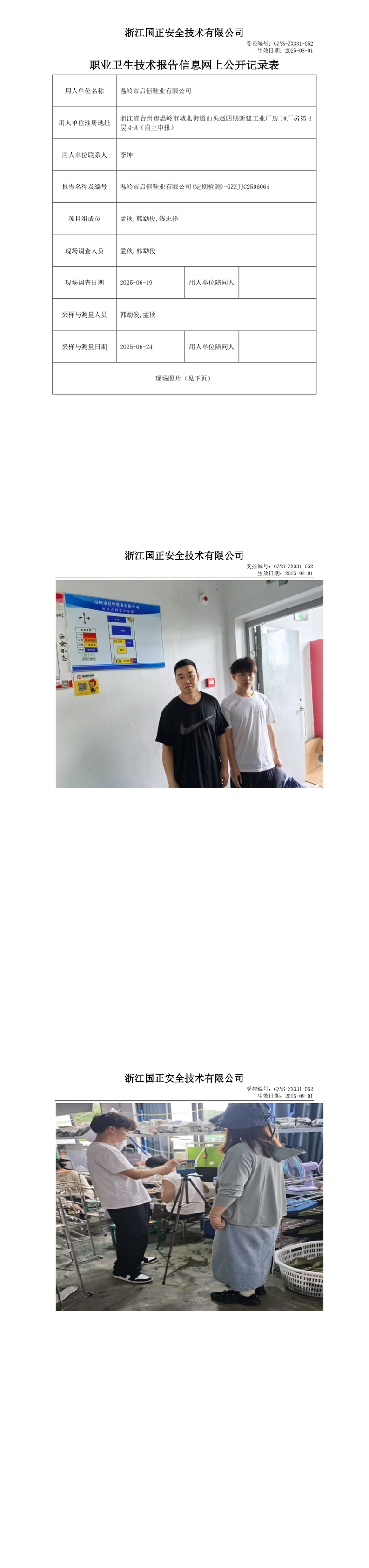 GZZJJC2506064_温岭市启恒鞋业有限公司职业卫生检测与评价报告网上公开表_