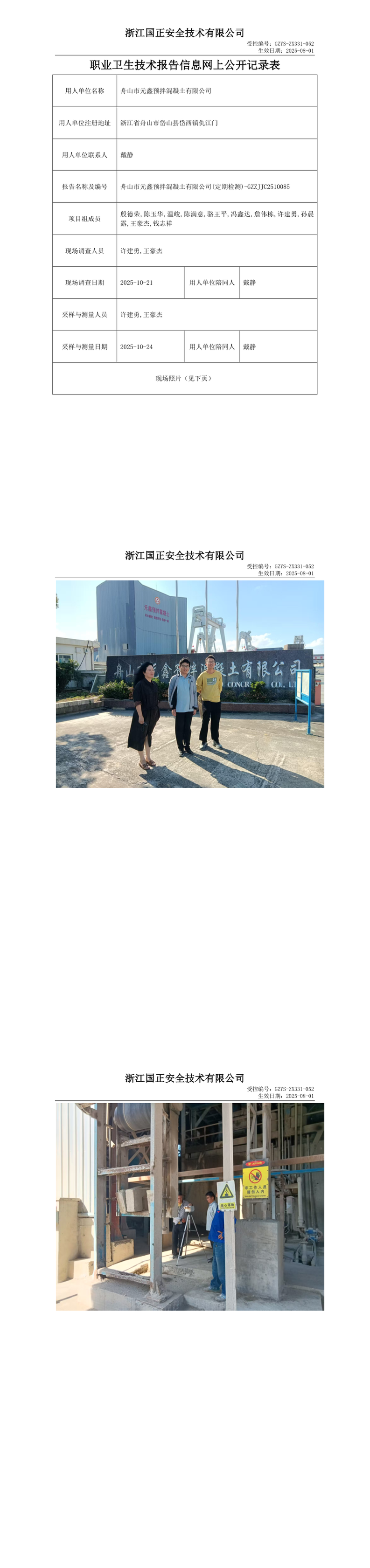 GZZJJC2510085舟山市元鑫预拌混凝土有限公司工作场所职业病危害因素检测报告网上公开信息表