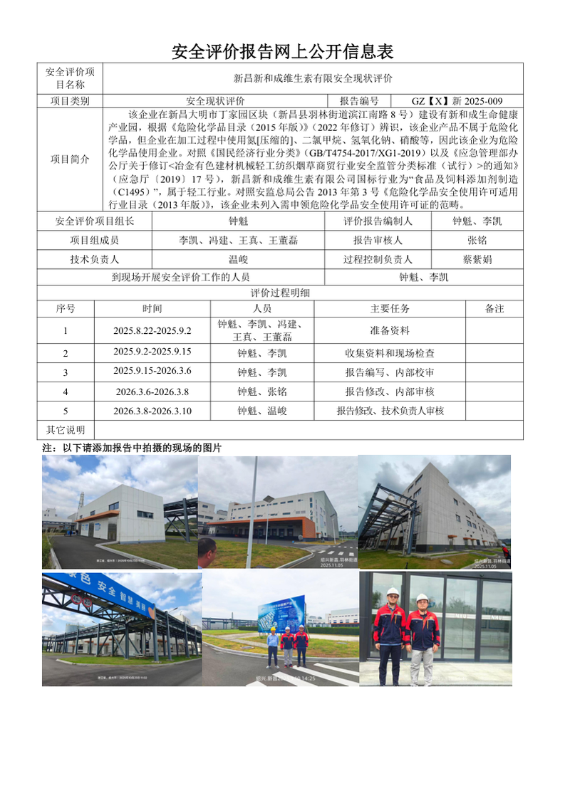 GZ【X】新2025-009新昌新和成维生素有限安全现状评价网上信息公开表