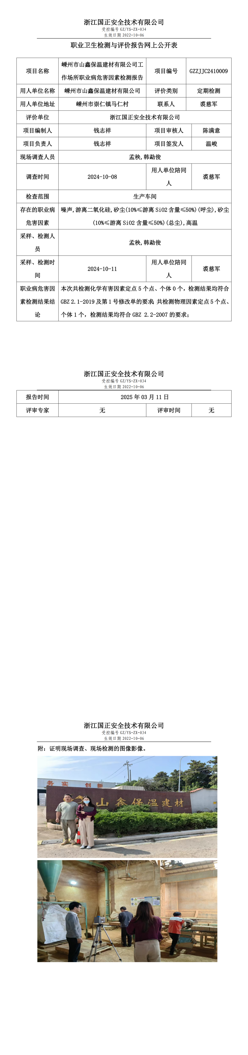 嵊州市山鑫保温建材有限公司职业卫生检测与评价报告网上公开表
