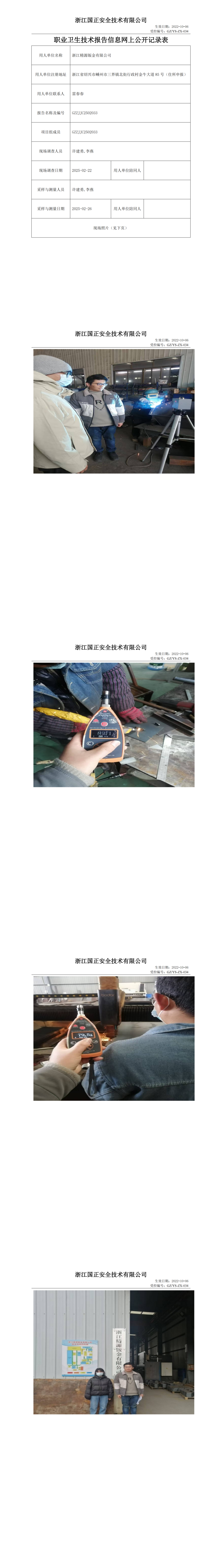 浙江精源钣金有限公司工作场所职业病危害因素检测报告网上公开信息表