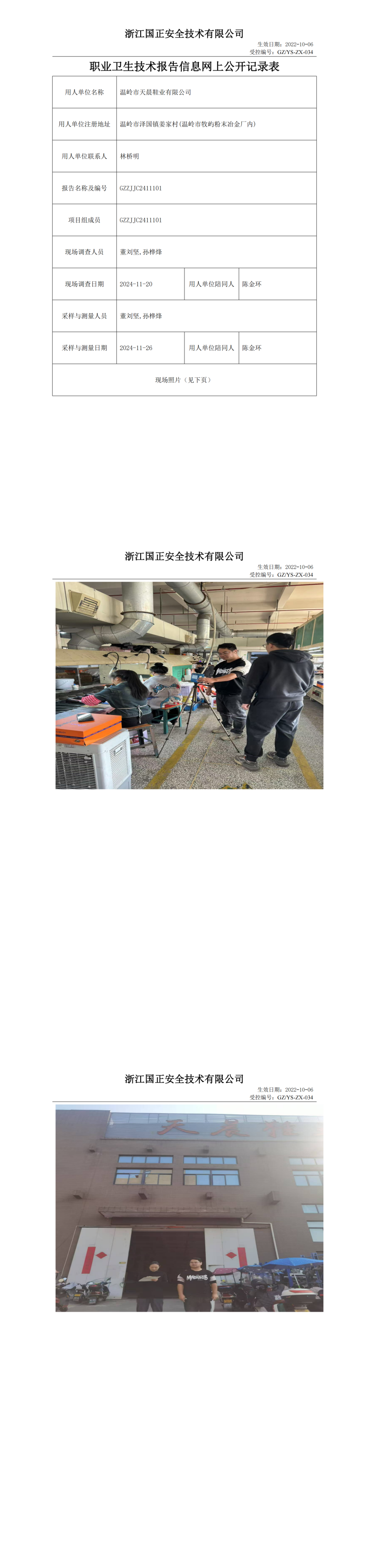 温岭市天晨鞋业有限公司工作场所职业病危害因素检测报告网上公开信息表