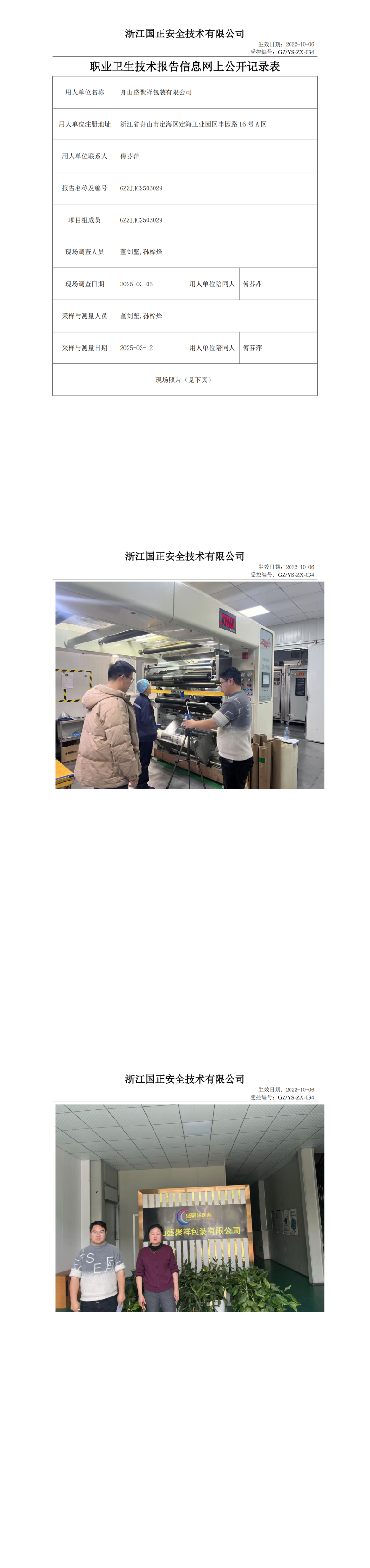 舟山盛聚祥包装有限公司工作场所职业病危害因素检测报告网上公开信息表