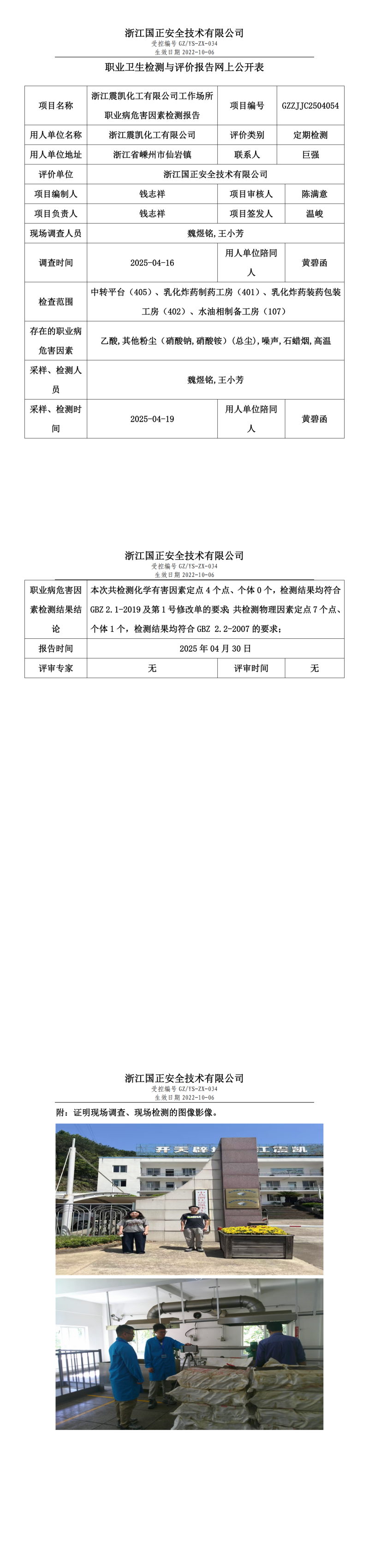 浙江震凯化工有限公司工作场所职业病危害因素检测报告网上公开信息表