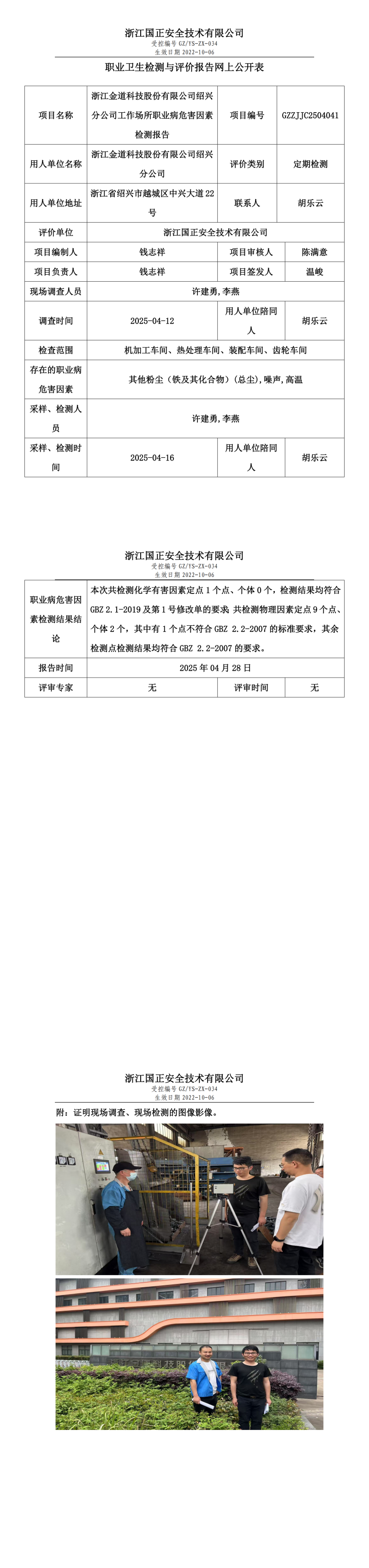 浙江金道科技股份有限公司绍兴分公司工作场所职业病危害因素检测报告网上公开信息表