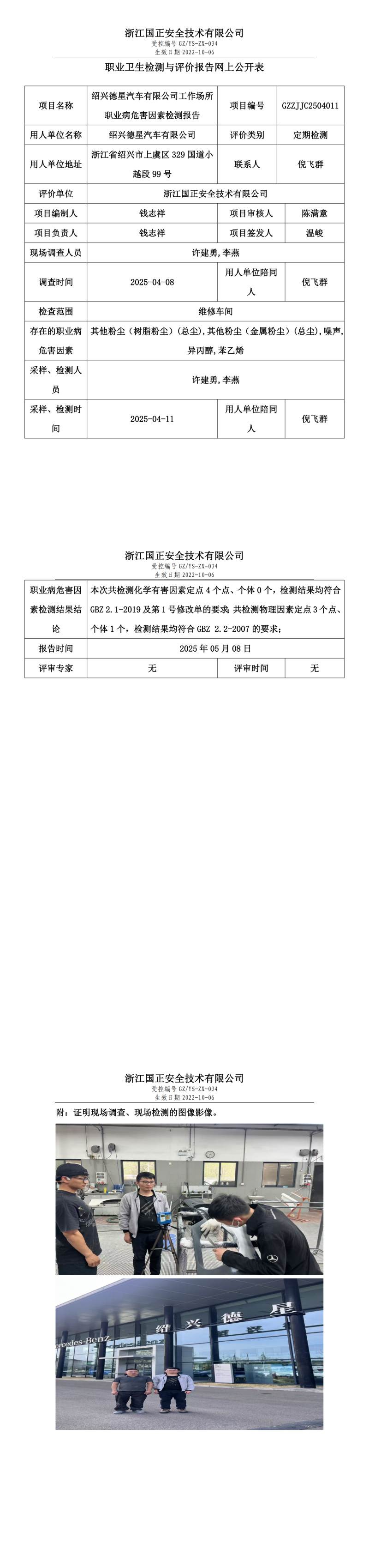 绍兴德星汽车有限公司工作场所职业病危害因素检测报告网上公开信息表