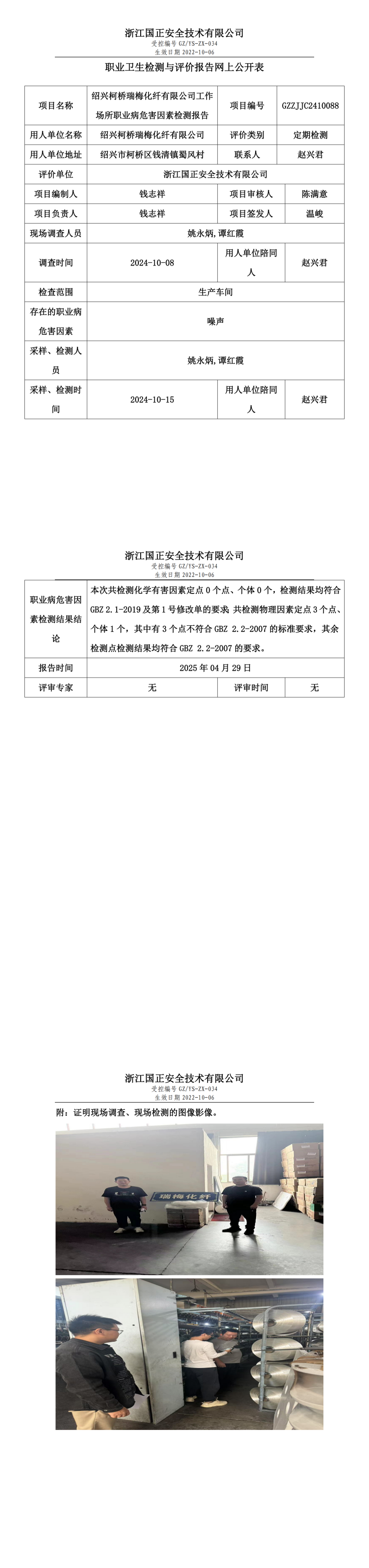 绍兴柯桥瑞梅化纤有限公司工作场所职业病危害因素检测报告网上公开信息表