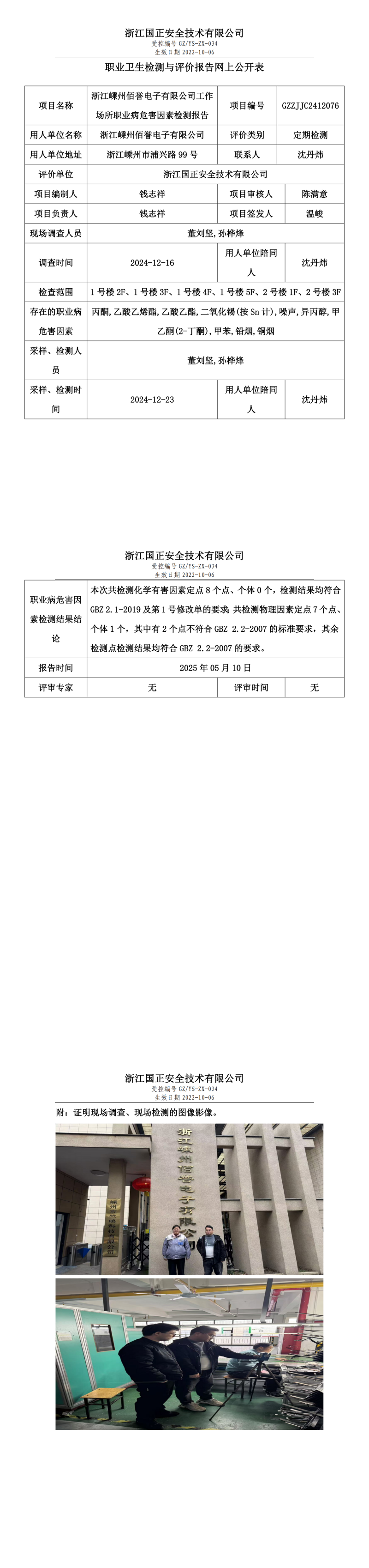 浙江嵊州佰誉电子有限公司工作场所职业病危害因素检测报告网上公开信息表