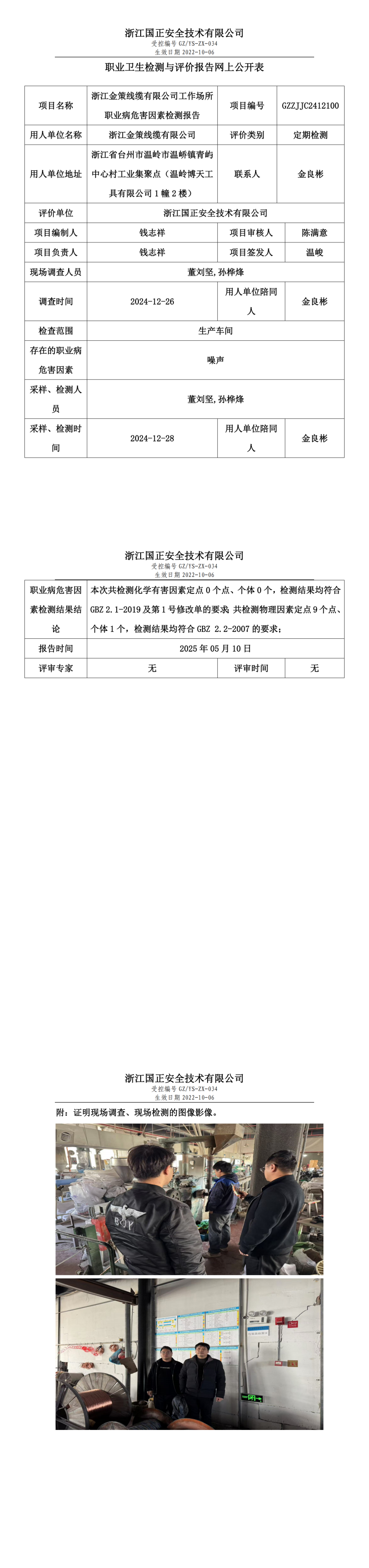 浙江金策线缆有限公司工作场所职业病危害因素检测报告网上公开信息表