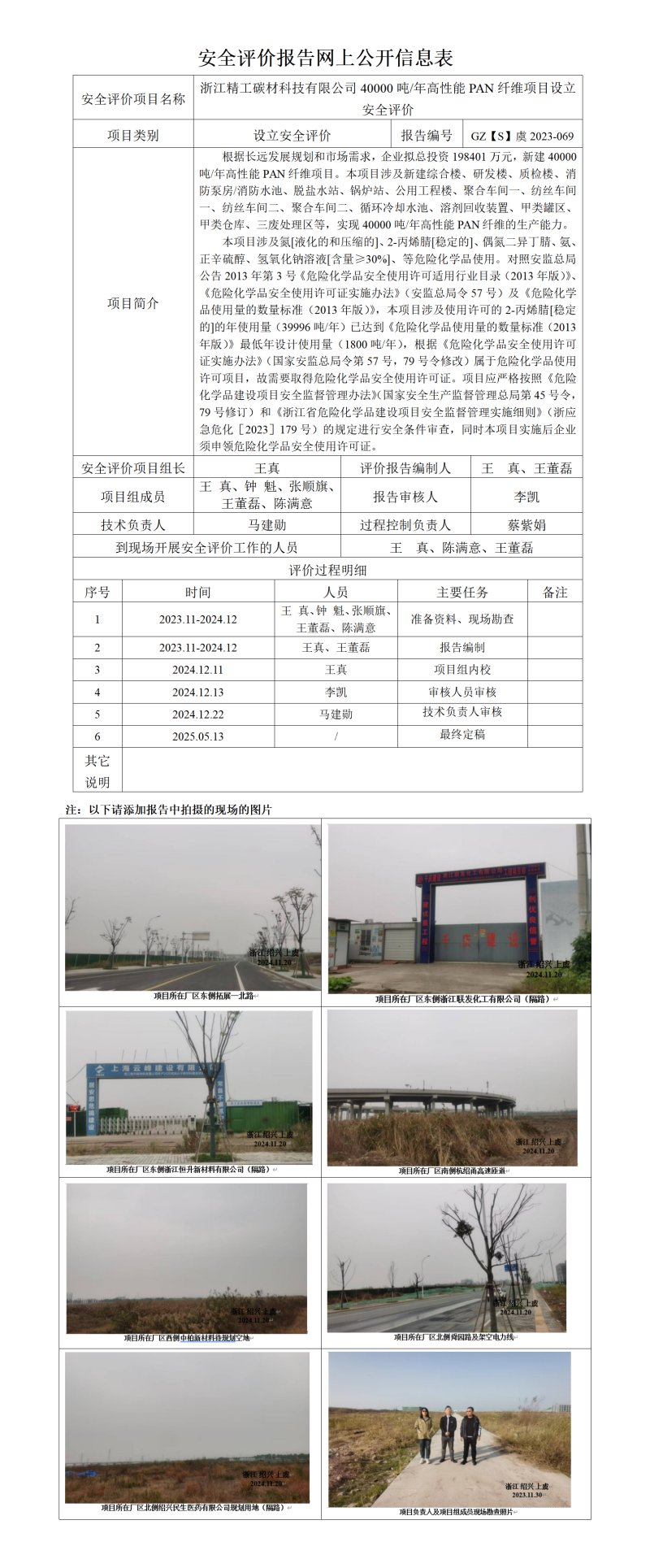 GZ【S】虞2023-069浙江精工碳材料科技有限公司40000吨年高性能PAN纤维项目设立安全评价网上信息公开表