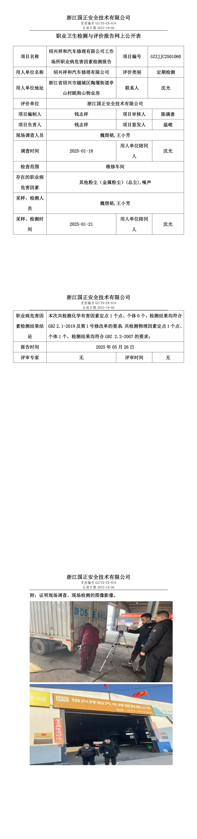 绍兴祥和汽车修理有限公司职业卫生检测与评价报告网上公开表