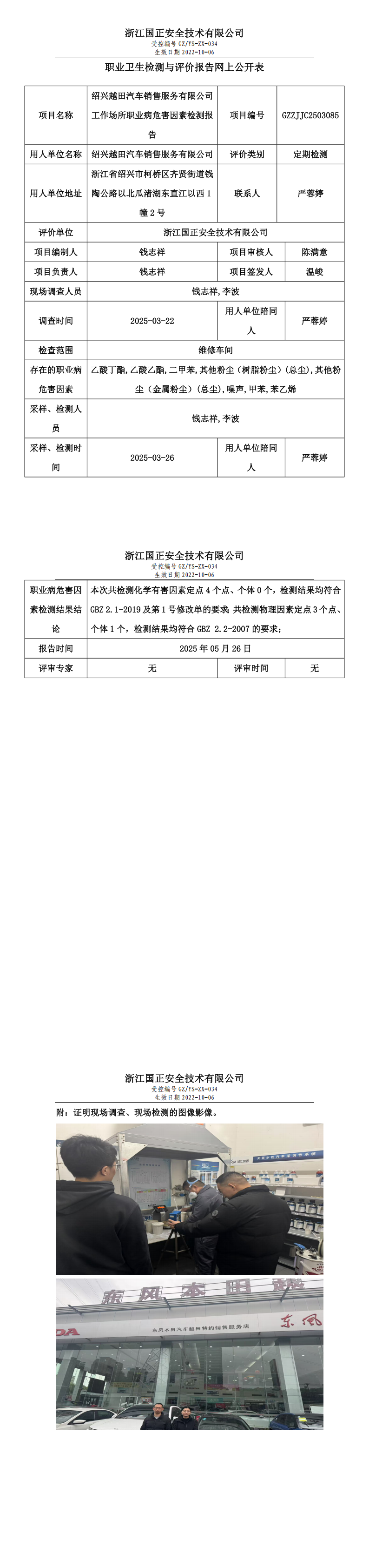 GZZJJC2503085_绍兴越田汽车销售服务有限公司工作场所职业病危害因素检测报告网上公开信息表