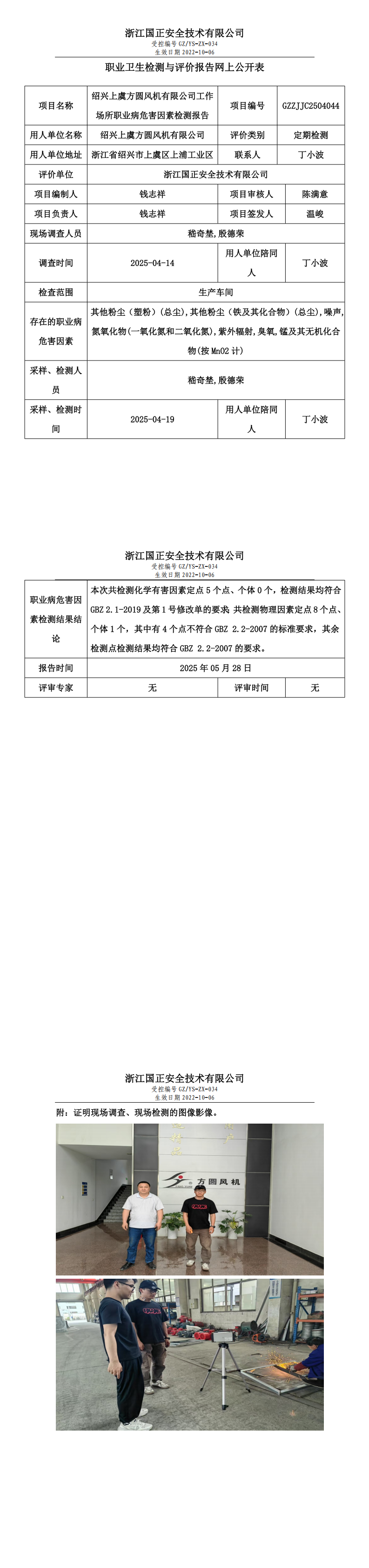 GZZJJC2504044_绍兴上虞方圆风机有限公司工作场所职业病危害因素检测报告网上公开信息表