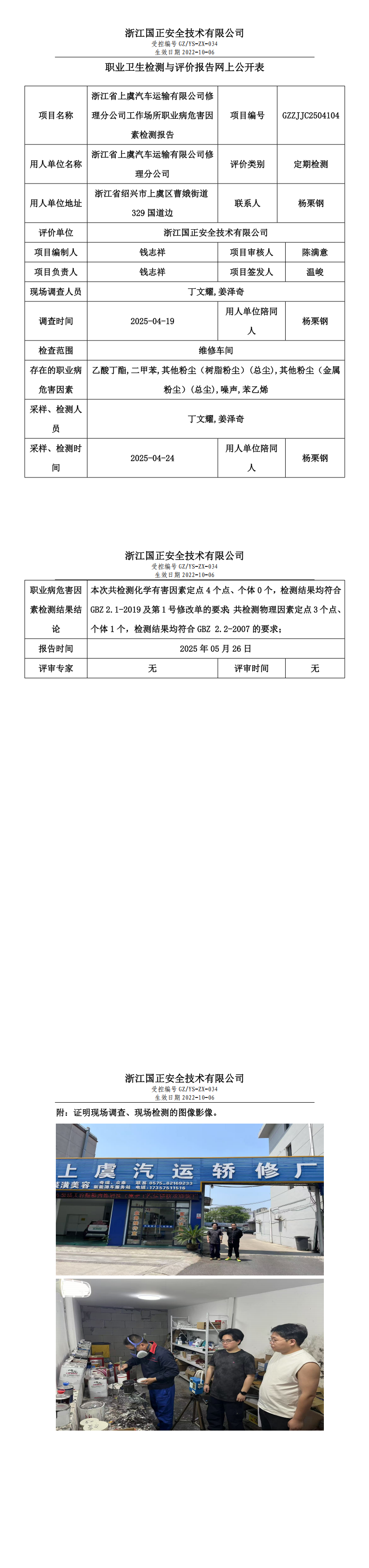 GZZJJC2504104_浙江省上虞汽车运输有限公司修理分公司工作场所职业病危害因素检测报告网上公开信息表