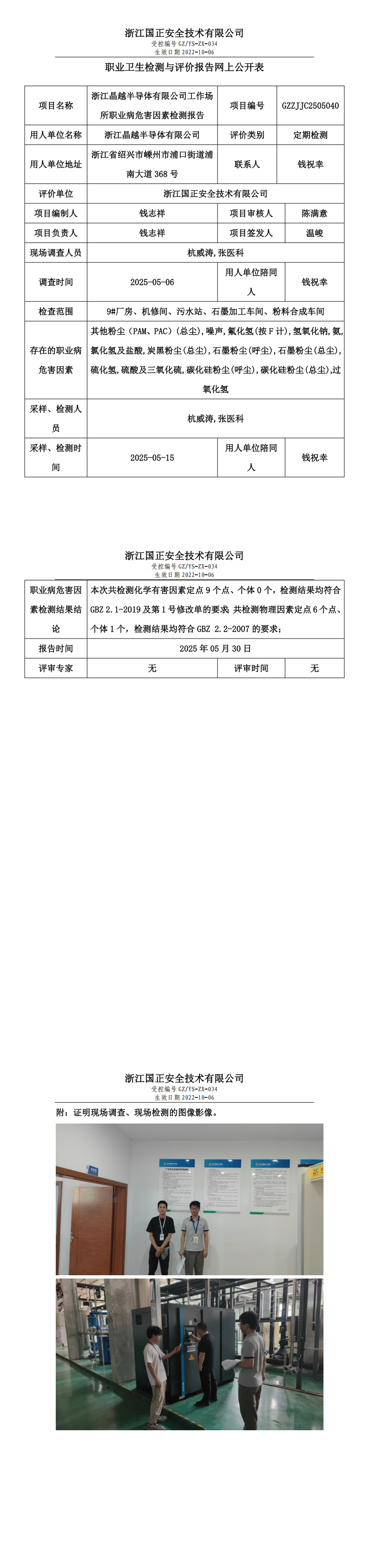 GZZJJC2505040_浙江晶越半导体有限公司工作场所职业病危害因素检测报告网上公开信息表