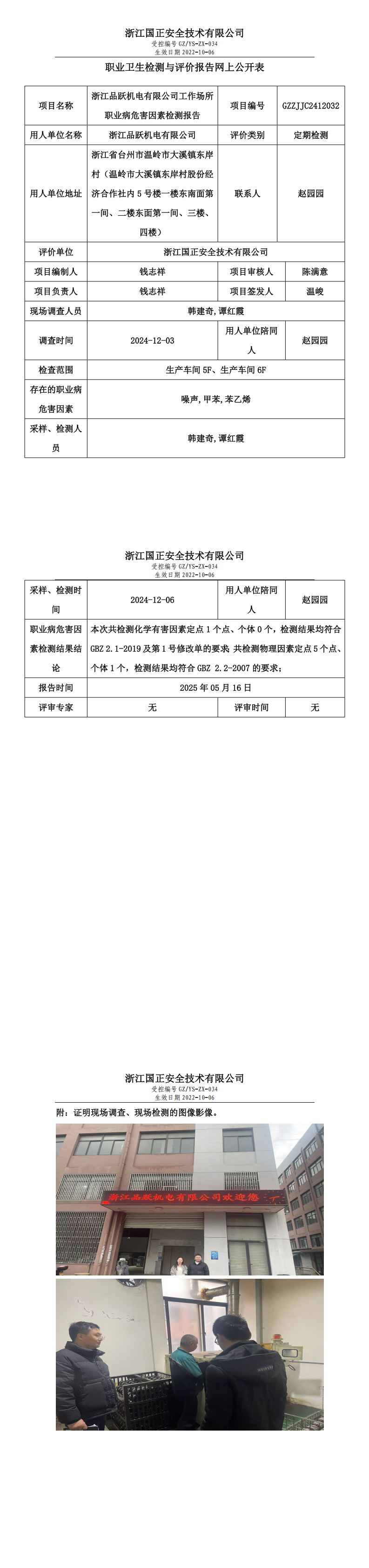 GZZJJC2412032_浙江品跃机电有限公司工作场所职业病危害因素检测报告网上公开信息表
