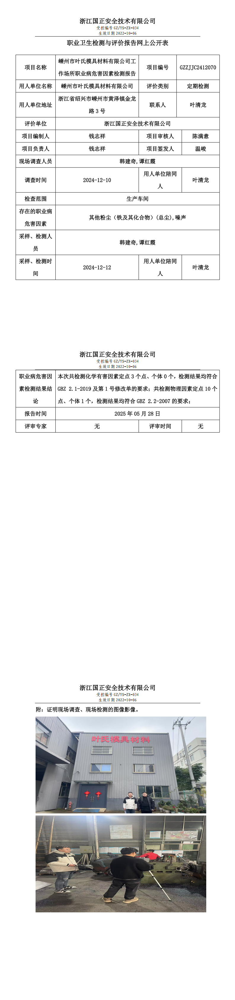 GZZJJC2412070_嵊州市叶氏模具材料有限公司工作场所职业病危害因素检测报告网上公开信息表
