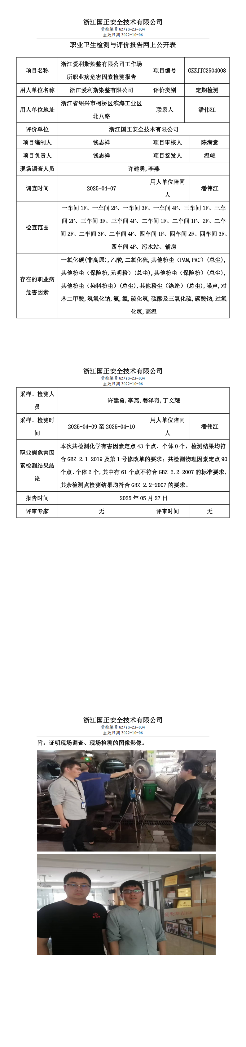 GZZJJC2504008浙江爱利斯染整有限公司工作场所职业病危害因素检测报告网上公开信息表