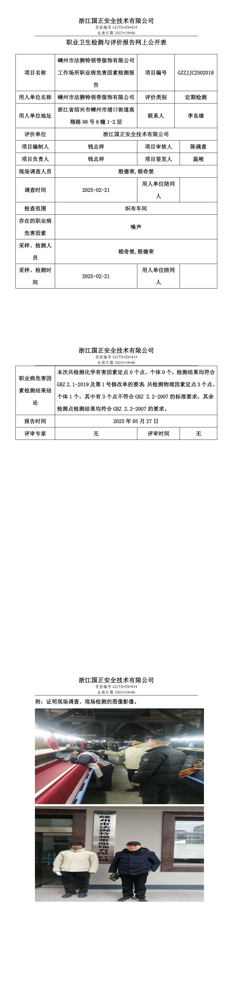 GZZJJC2502018_嵊州市法狮特领带服饰有限公司工作场所职业病危害因素检测报告网上公开信息表