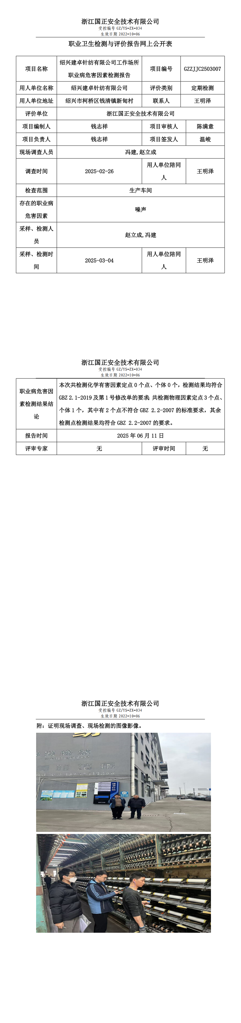 GZZJJC2537绍兴建卓针纺有限公司工作场所职业病危害因素检测报告网上公开信息表
