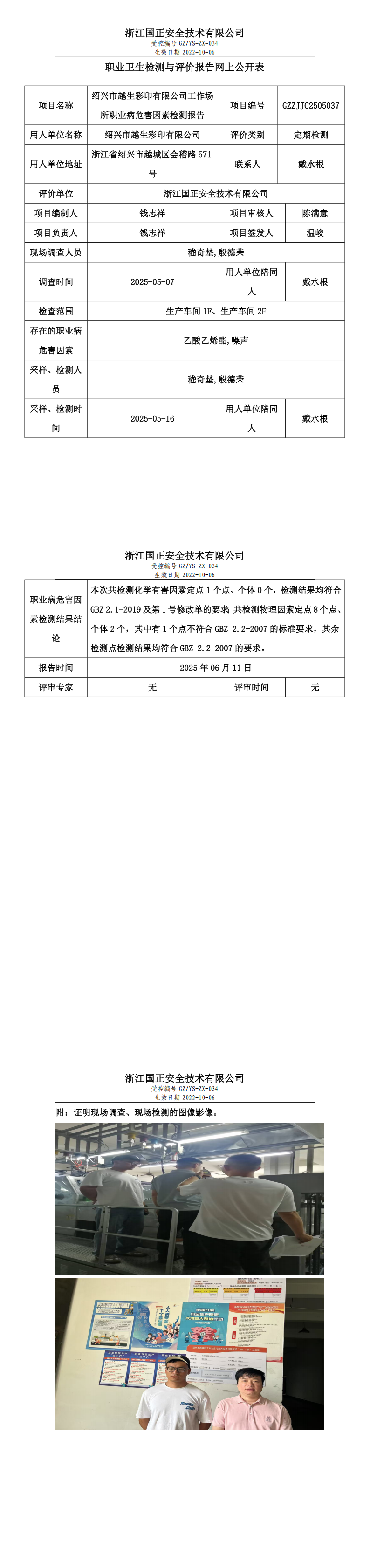 GZZJJC2505037绍兴市越生彩印有限公司工作场所职业病危害因素检测报告网上公开信息表