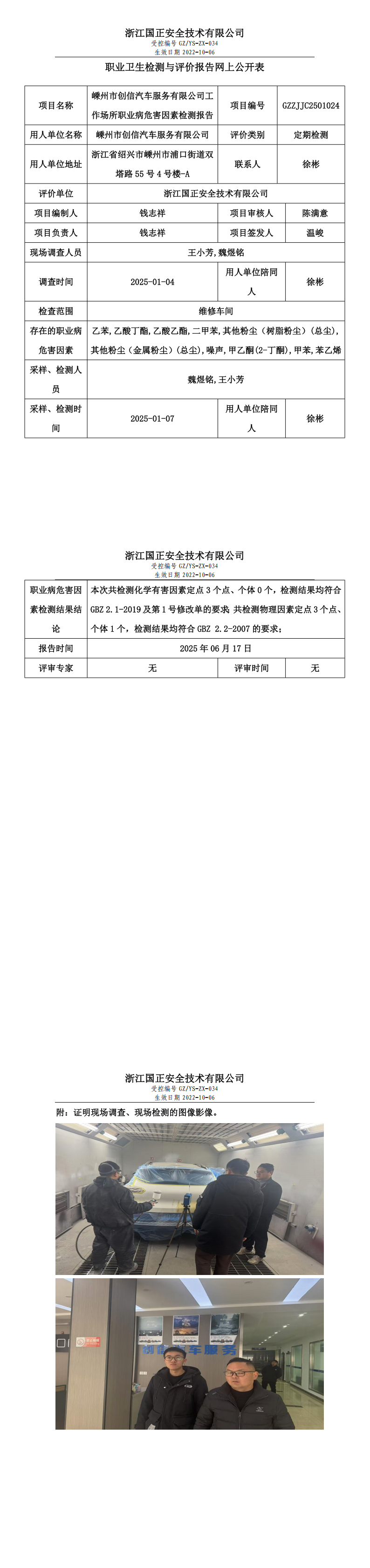 GZZJJC2501024_嵊州市创信汽车服务有限公司工作场所职业病危害因素检测报告网上公开信息表