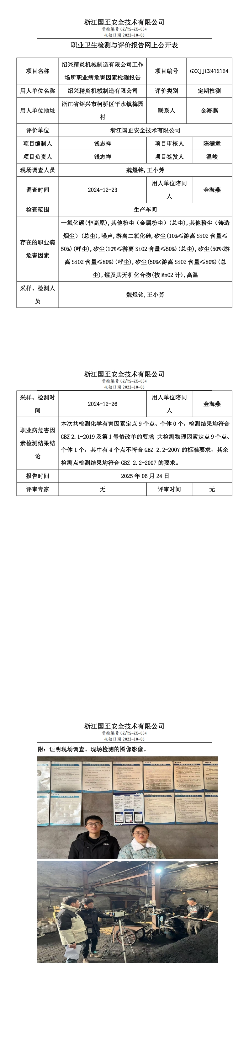 GZZJJC2412124_绍兴精炎机械制造有限公司工作场所职业病危害因素检测报告网上公开信息表