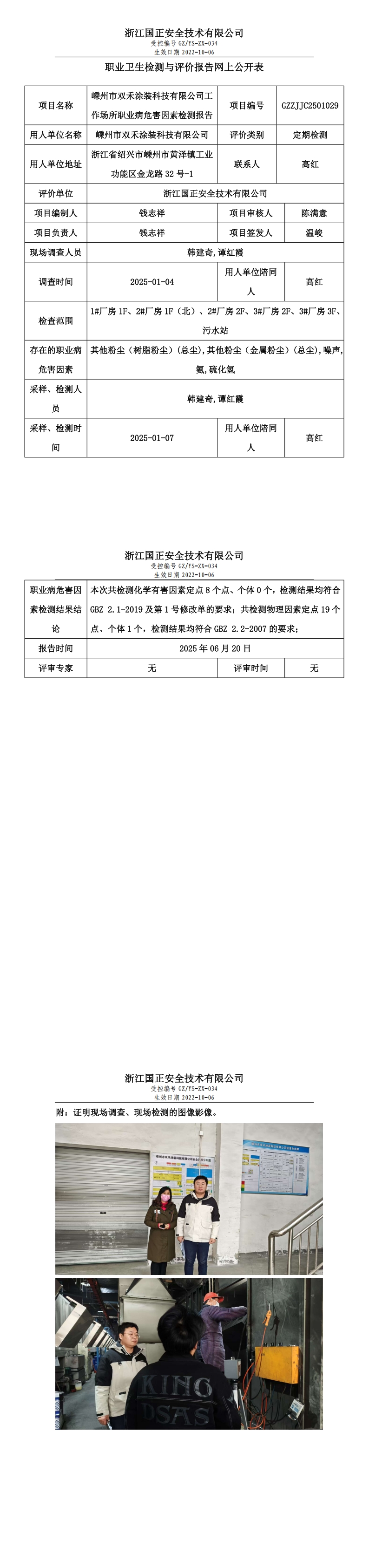 GZZJJC2501029_嵊州市双禾涂装科技有限公司工作场所职业病危害因素检测报告网上公开信息表