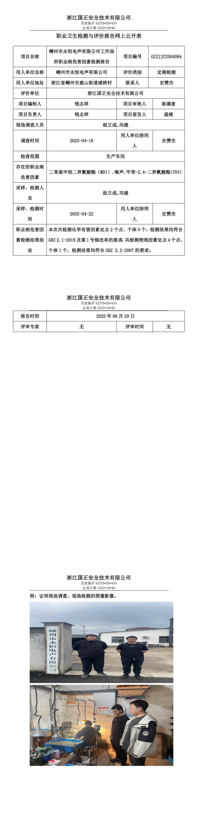 GZZJJC2504084_嵊州市永恒电声有限公司工作场所职业病危害因素检测报告网上公开信息表