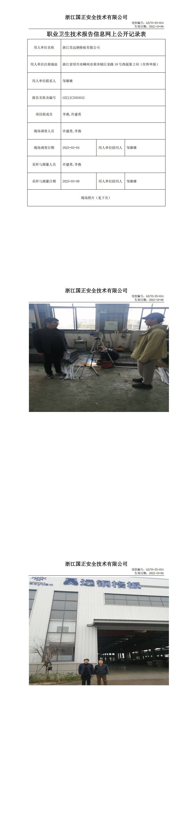 GZZJJC2503032浙江昊远钢格板有限公司工作场所职业病危害因素检测报告网上公开信息表