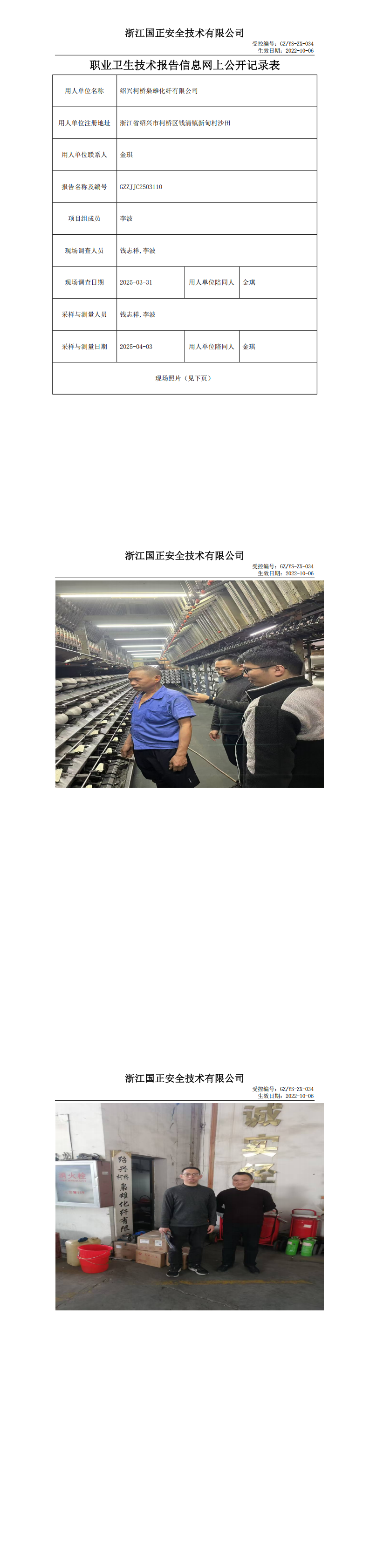 GZZJJC2503110绍兴柯桥枭雄化纤有限公司工作场所职业病危害因素检测报告网上公开信息表