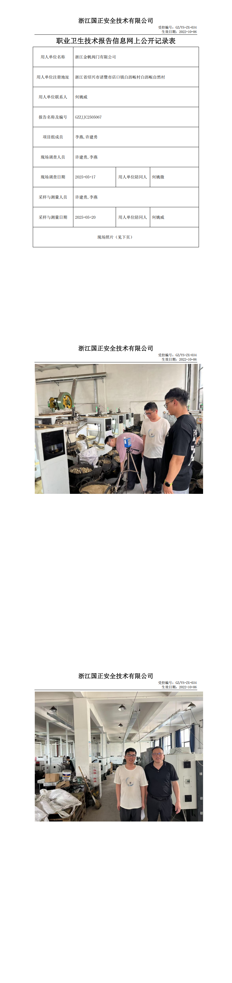 GZZJJC2505067浙江金帆阀门有限公司工作场所职业病危害因素检测报告网上公开信息表