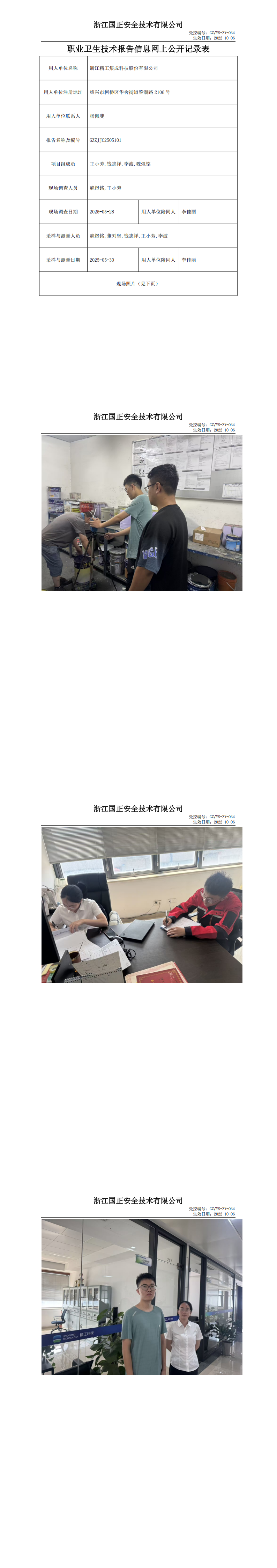 GZZJJC2505101_浙江精工集成科技股份有限公司工作场所职业病危害因素检测报告网上公开信息表