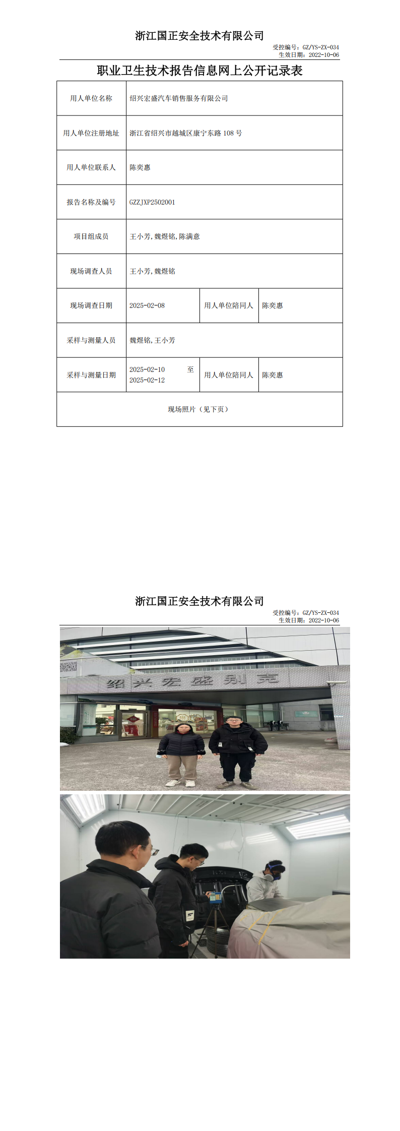 GZZJXP2502001_绍兴宏盛汽车销售服务有限公司职业卫生检测与评价报告网上公开表