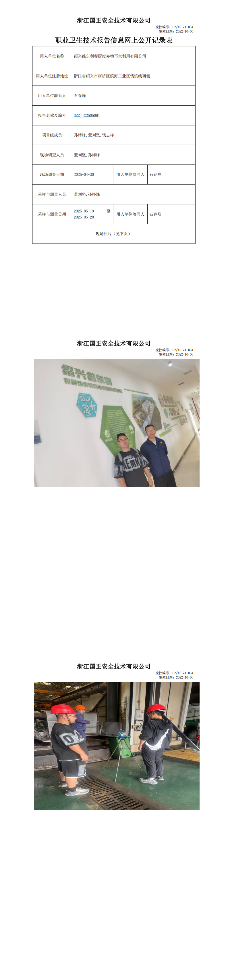 GZZJJC2505061_绍兴维尔利餐厨废弃物再生利用有限公司工作场所职业病危害因素检测报告网上公开信息表