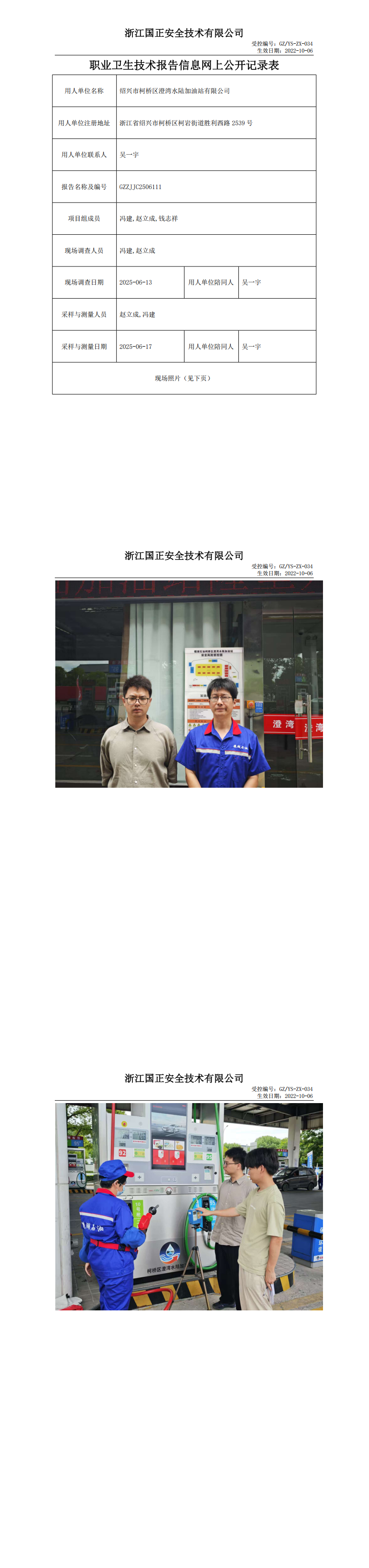 GZZJJC2506111_绍兴市柯桥区澄湾水陆加油站有限公司工作场所职业病危害因素检测报告网上公开信息表