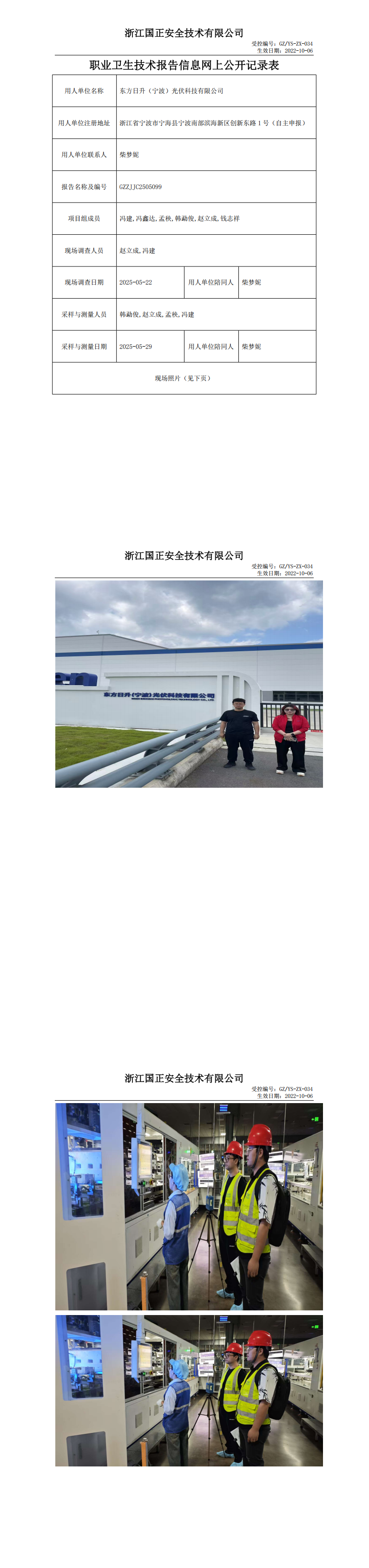 GZZJJC2505099_东方日升(宁波)光伏科技有限公司工作场所职业病危害因素检测报告网上公开信息表