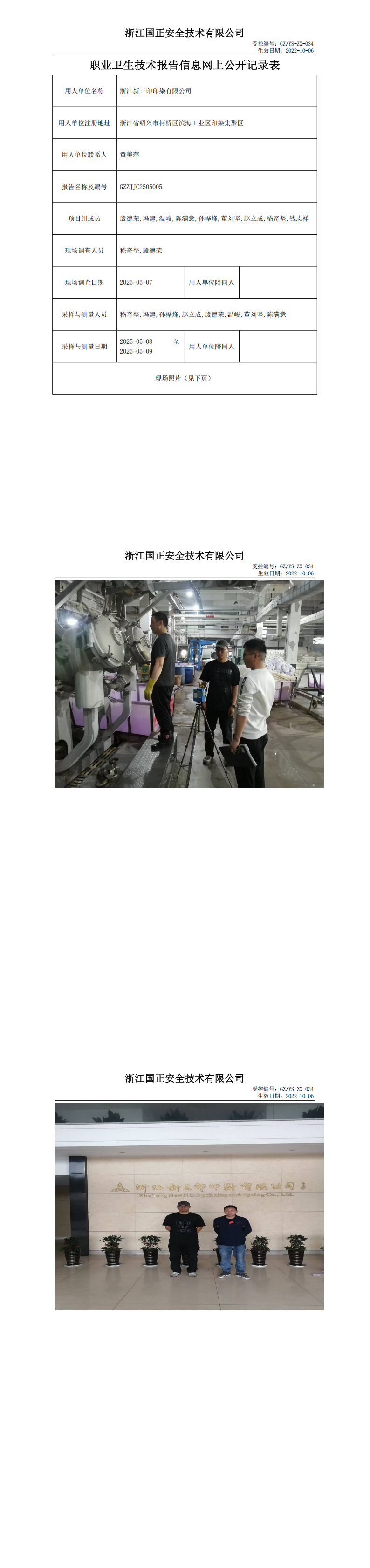 GZZJJC2505005浙江新三印印染有限公司工作场所职业病危害因素检测报告网上公开信息表
