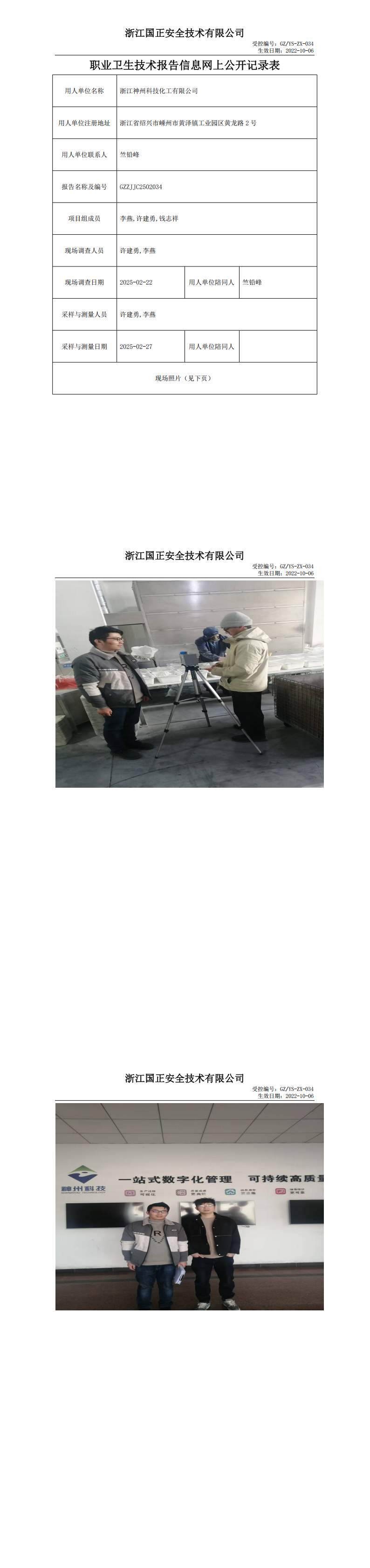 GZZJJC2502034浙江神州科技化工有限公司工作场所职业病危害因素检测报告网上公开信息表